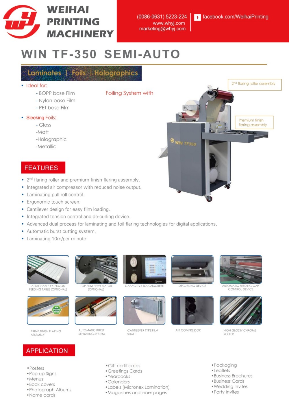 수동 공급 라미네이팅 및 포일링 기계는 Weihai Printing Machinery Co., Ltd.에서 설계 및 제조한 수동 용지 공급 라미네이팅 및 금속 포일링 장비입니다. 컴팩트한 디자인으로 작업장 공간을 절약하고 라미네이팅 및 금속 포일링 기능을 통합하여 자체 장식 처리가 필요한 기업에 적합합니다. 일반 인쇄물을 고급스럽고 정교한 완제품으로 변환할 수 있으며 주문형 디지털 애플리케이션 및 기존 석판 인쇄 오프셋 인쇄와 완벽하게 호환됩니다. 최적의 처리 결과를 보장하기 위해 기계에는 작동 속도, 용지 두께, 디자인 패턴과 같은 주요 변수에 따라 작동 중 롤러 압력과 가열 온도를 조정하는 전자 제어 장치가 장착되어 있습니다. 고성능 수동급지 핫스탬핑 및 라미네이팅 장비로 고객 제품의 부가가치를 획기적으로 향상시키는 것으로 검증되었습니다. 고객은 다양한 장식 요구 사항을 충족하기 위해 다양한 라미네이팅 필름과 금속 호일 중에서 선택할 수 있습니다. 또한, 배너 및 매우 긴 인쇄물을 수용할 수 있는 확장된 급지 테이블이 제공됩니다.