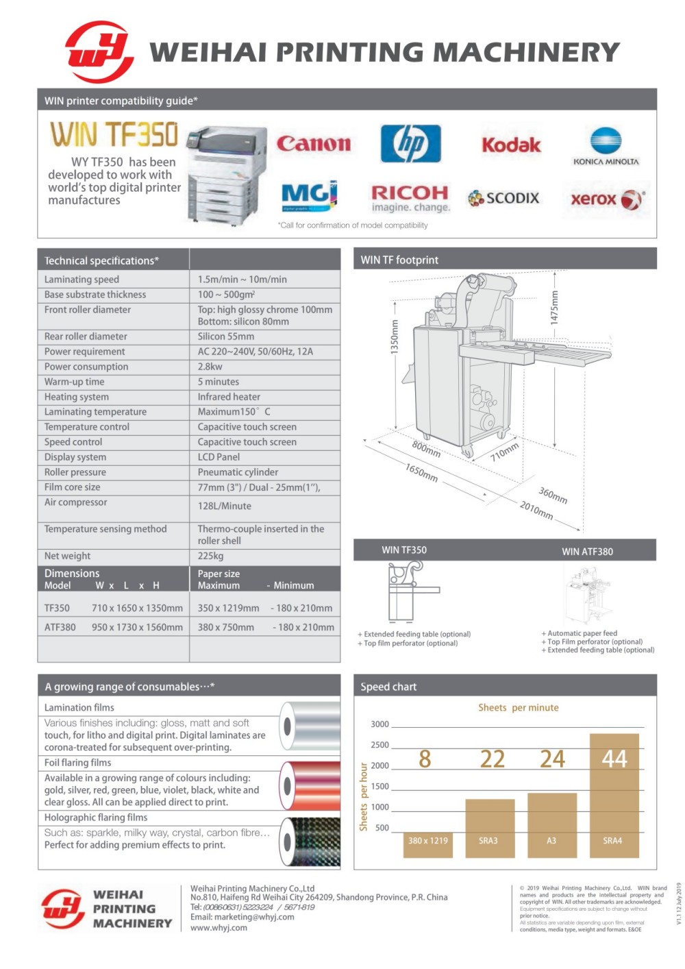 적층 속도(미터/분) 1.5-10 온도 조절 터치스크린